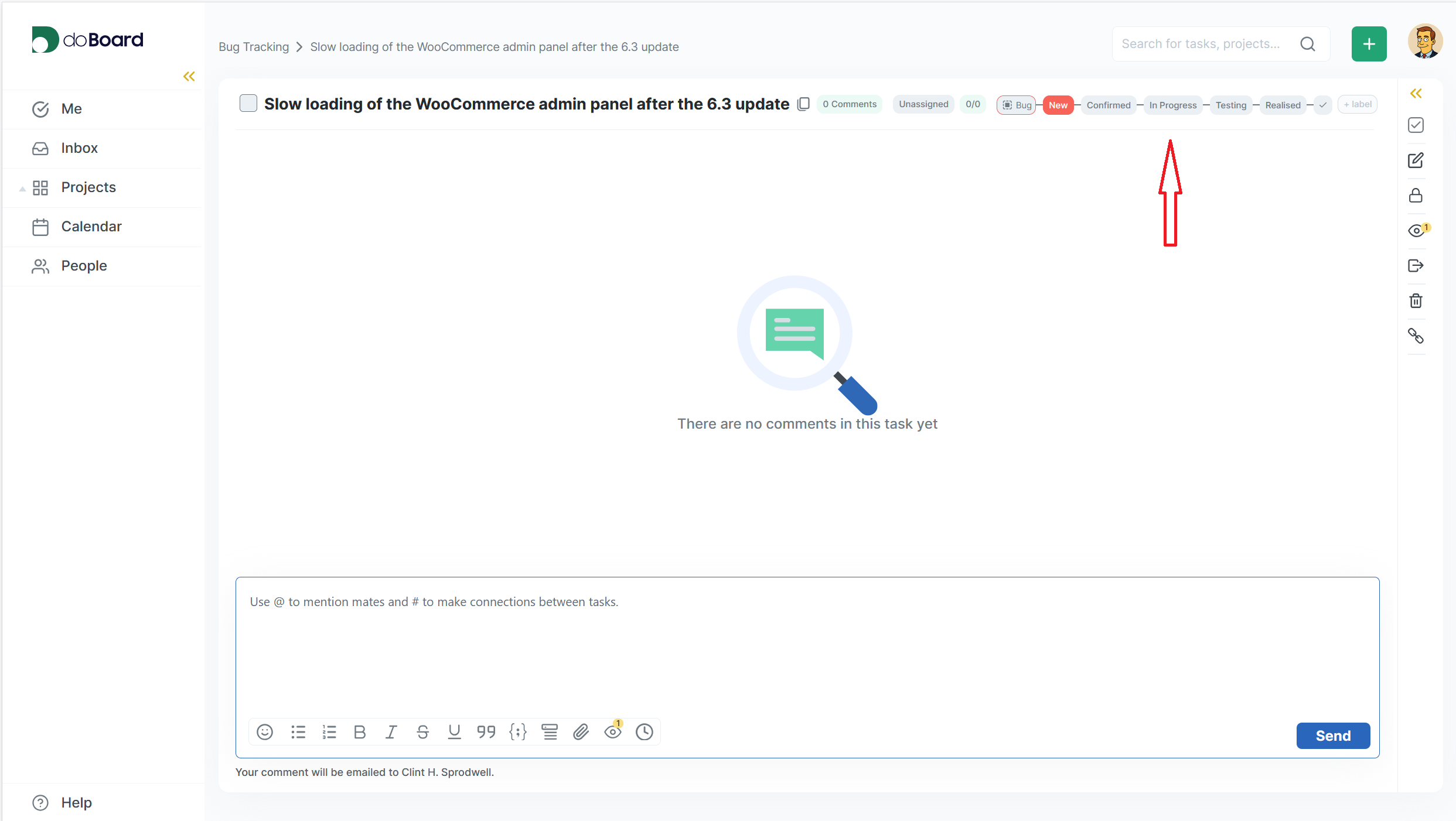 - In Progress — the developer is working on a fix