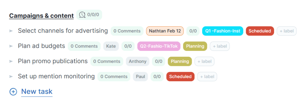 Their secret weapon? Campaign-specific labels like “Q1-Fashion-Instagram” and “Q1-Fashion-TikTok” paired with status labels “Planning,” “Creation,” and “Scheduled.” Result? Content pipeline visibility jumped 200%, and missed posts became ancient history.